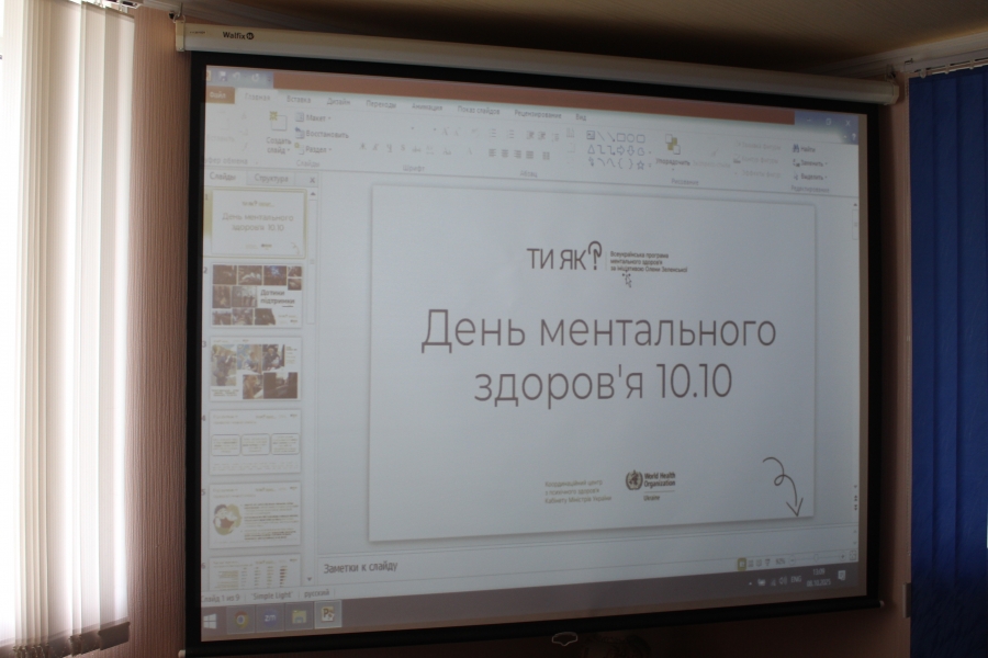 І.Яйкун розповіла присутнім на презентації працівникам структурних підрозділів, причетних до реалізації програм ментального здоров’я у громаді , що таке ментальне здоров’я , як справлятися зі стресом, реалізовувати здібності, навчатися та працювати, робити внесок у життя своєї громади долаючи виклики теперішнього часу та як покращити своє ментальне здоров’я.