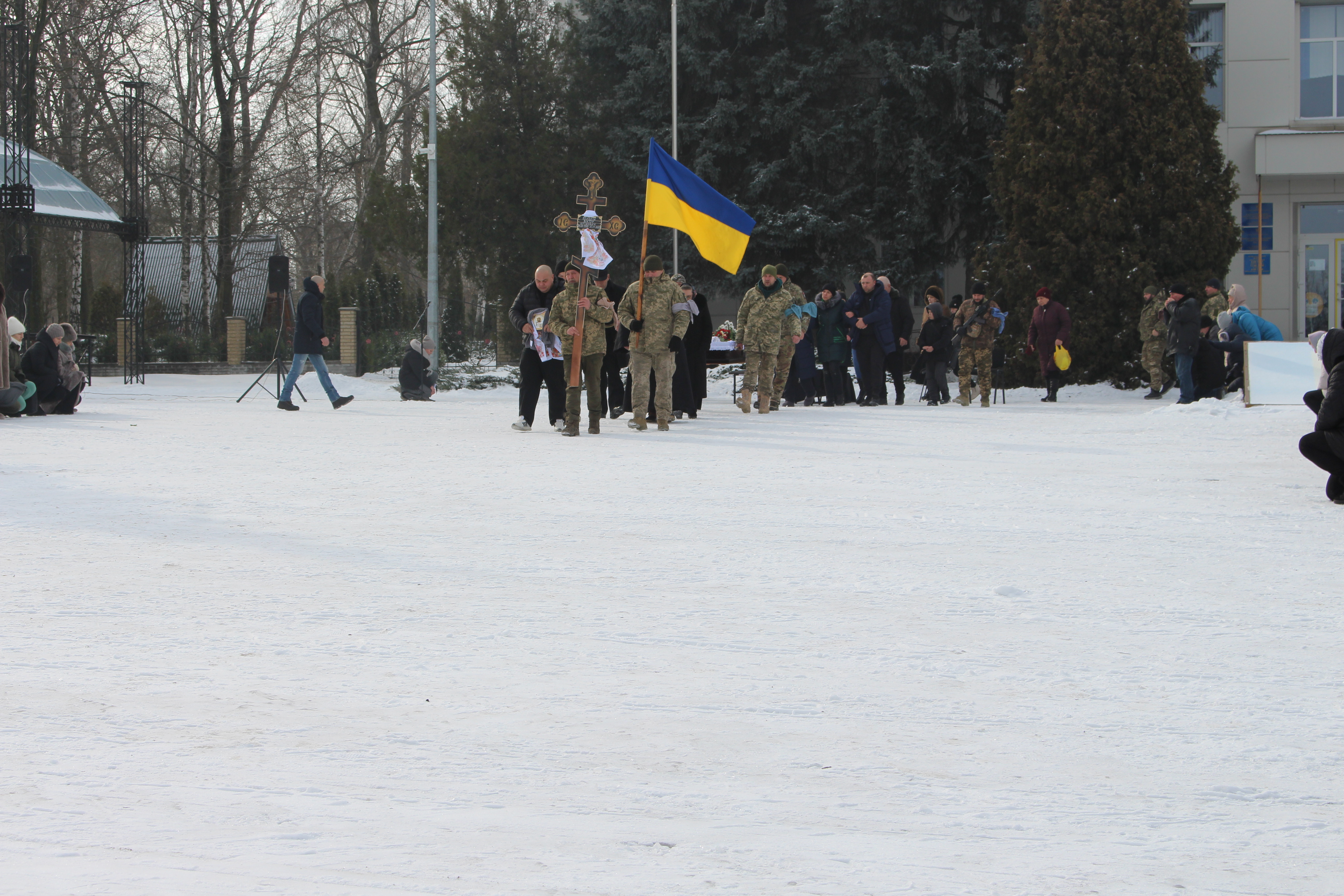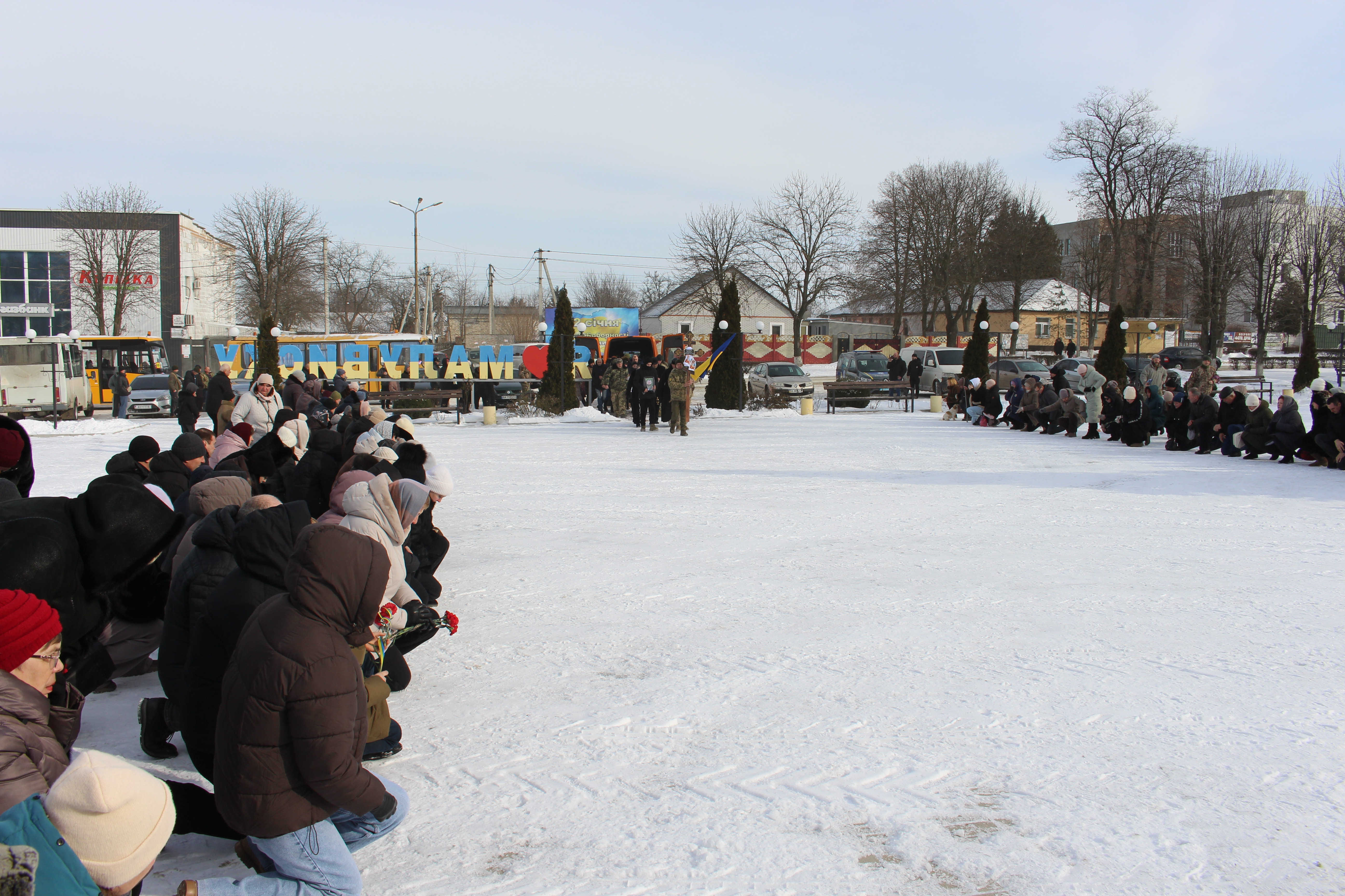 На центральну площу міста Малої Виски попрощатися зі своїм захисником прийшли рідні, близькі,друзі, знайомі, керівництво та працівники Маловисківської міської ради, організацій та установ, бойові побратими, мешканці громади.